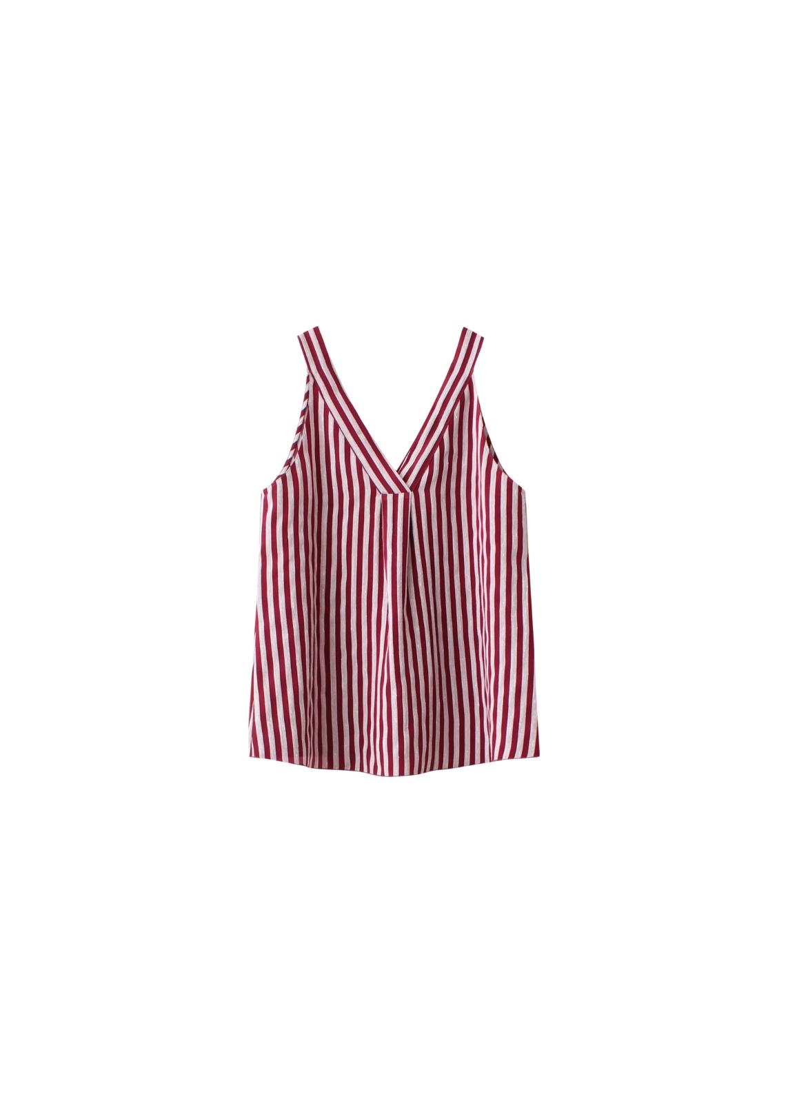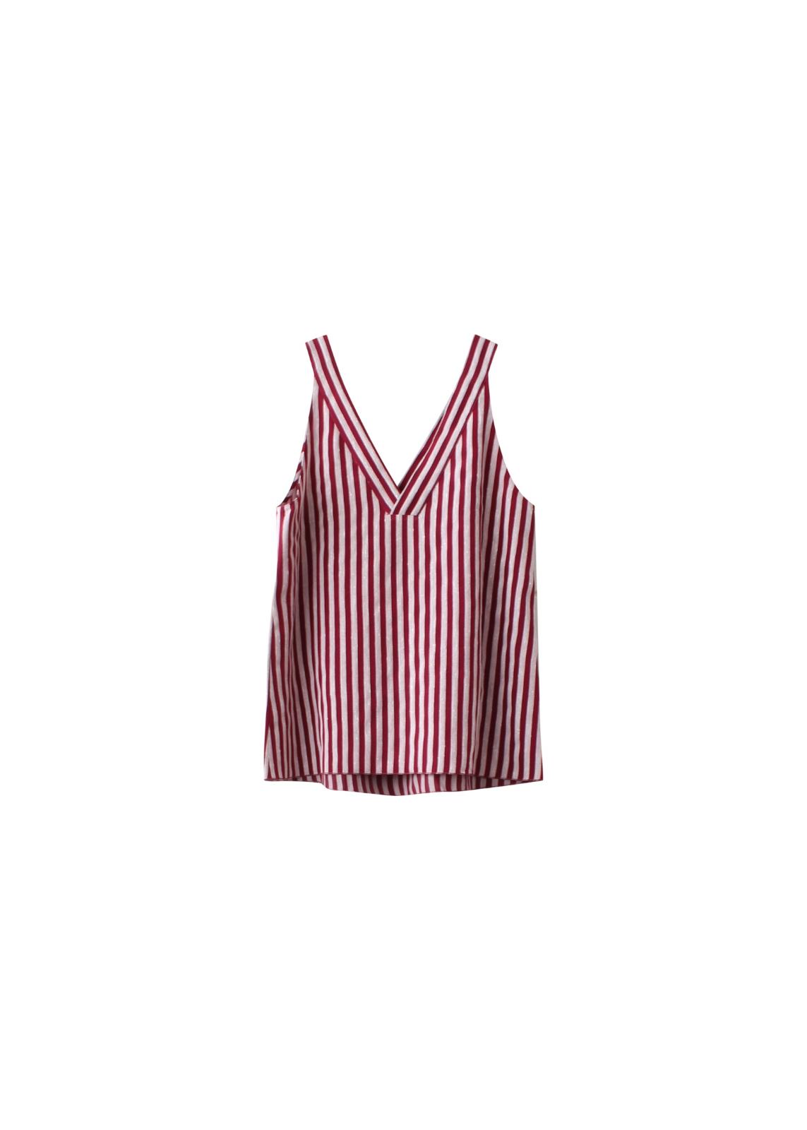 Top senza maniche, scollo profondo a V sul davanti e sul retro. Vestibilità regolare.