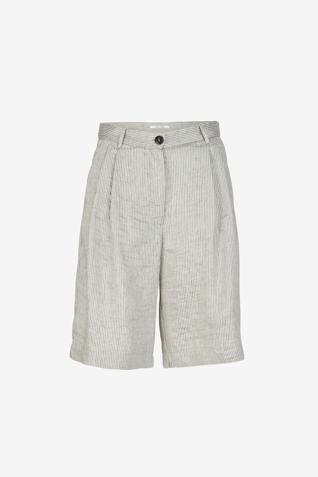 Comfortable shorts in striped linen crepe. Side pockets and metal zip and button fastening in the front.