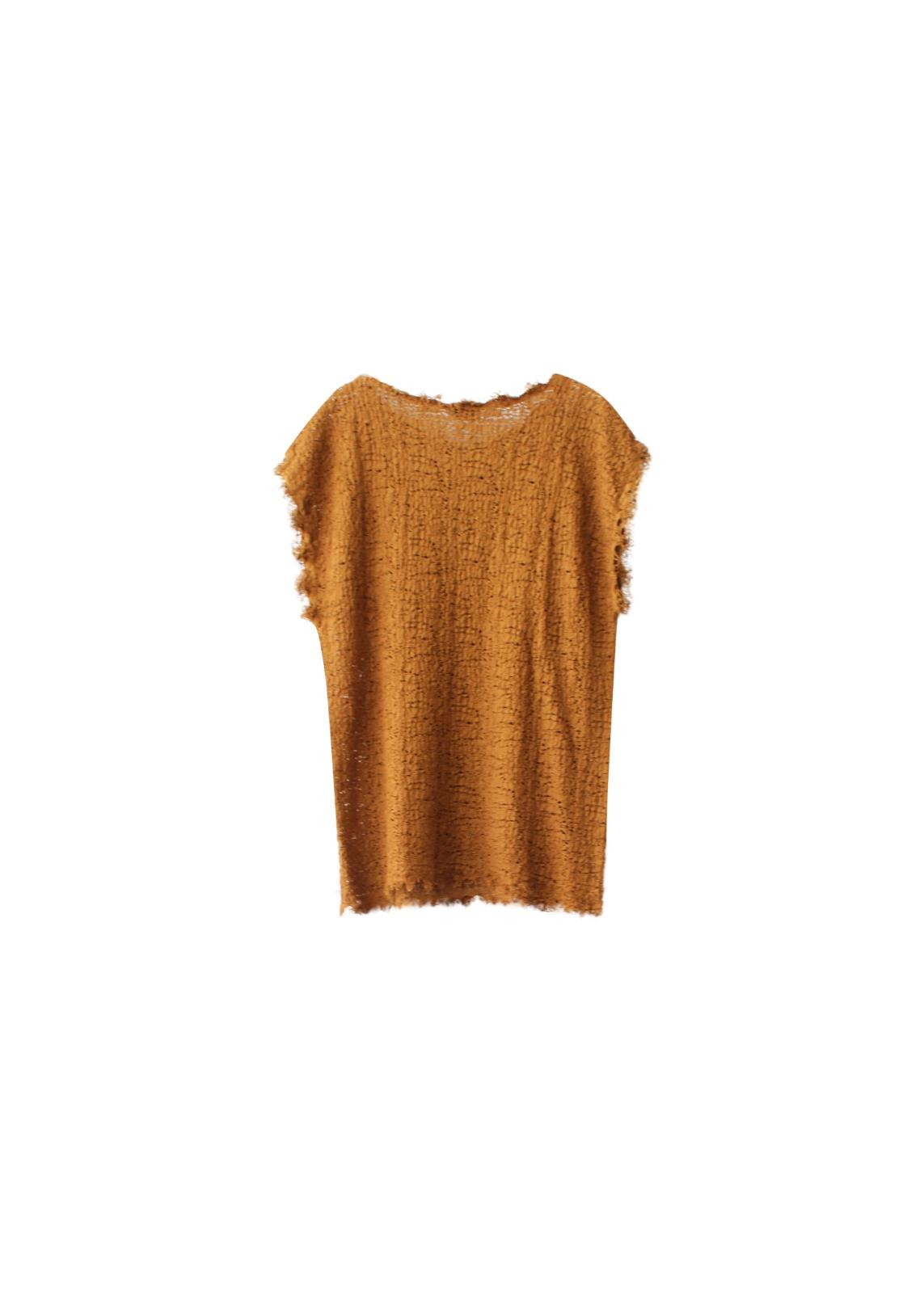 Top maniche corte in pizzo. Collo a giro. Vestibilità regolare.