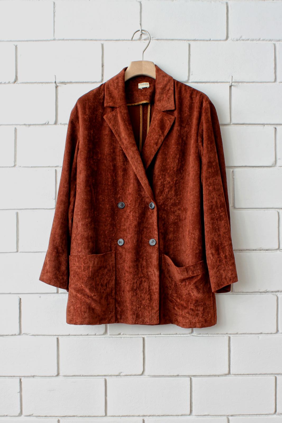 Collo con revers, chiusura con bottoni e tasche frontali.