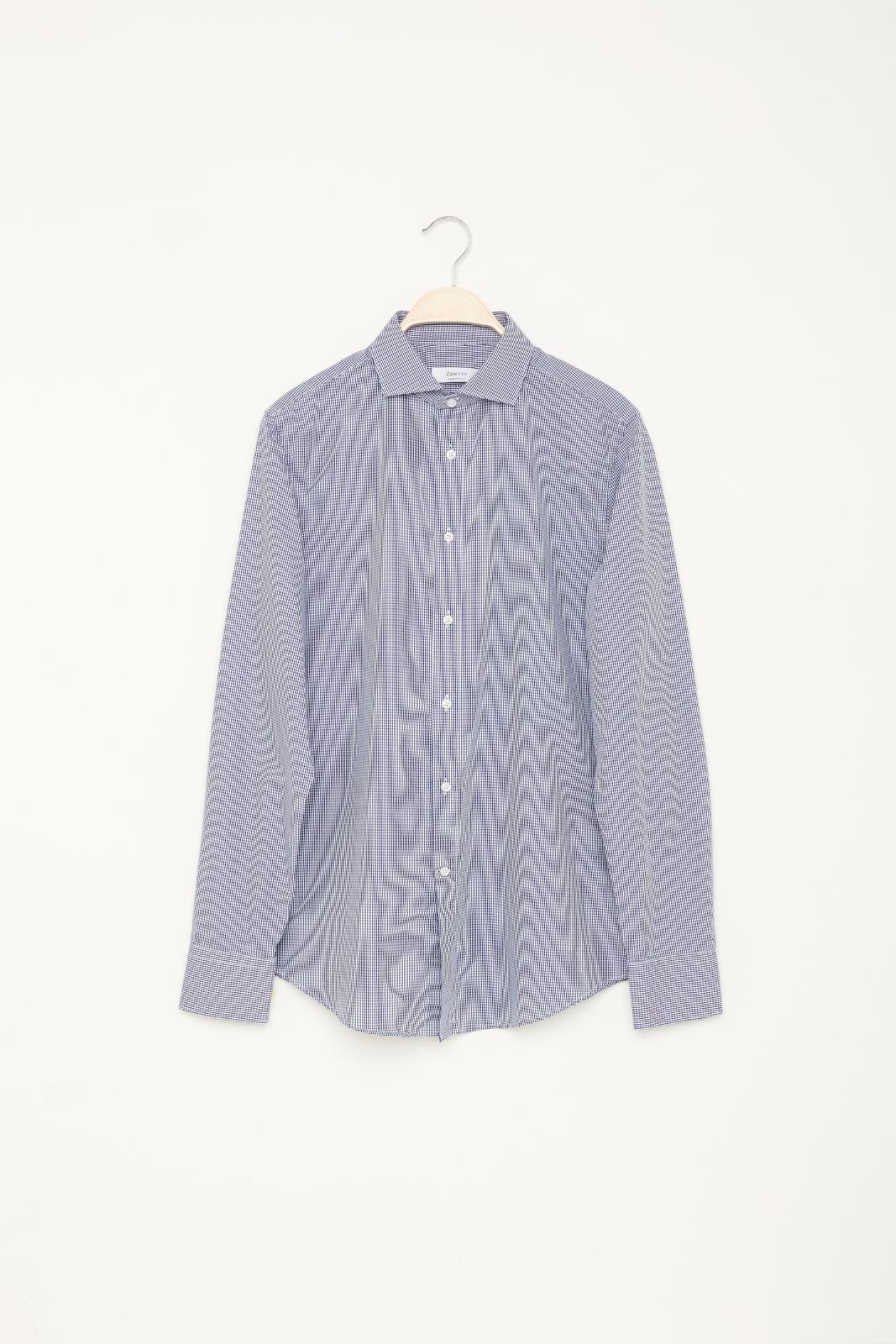 Camicia in tessuto di cotone, quadretto vichy. Abbottonatura classica e collo francese piccolo in vestibilità slim fit.
